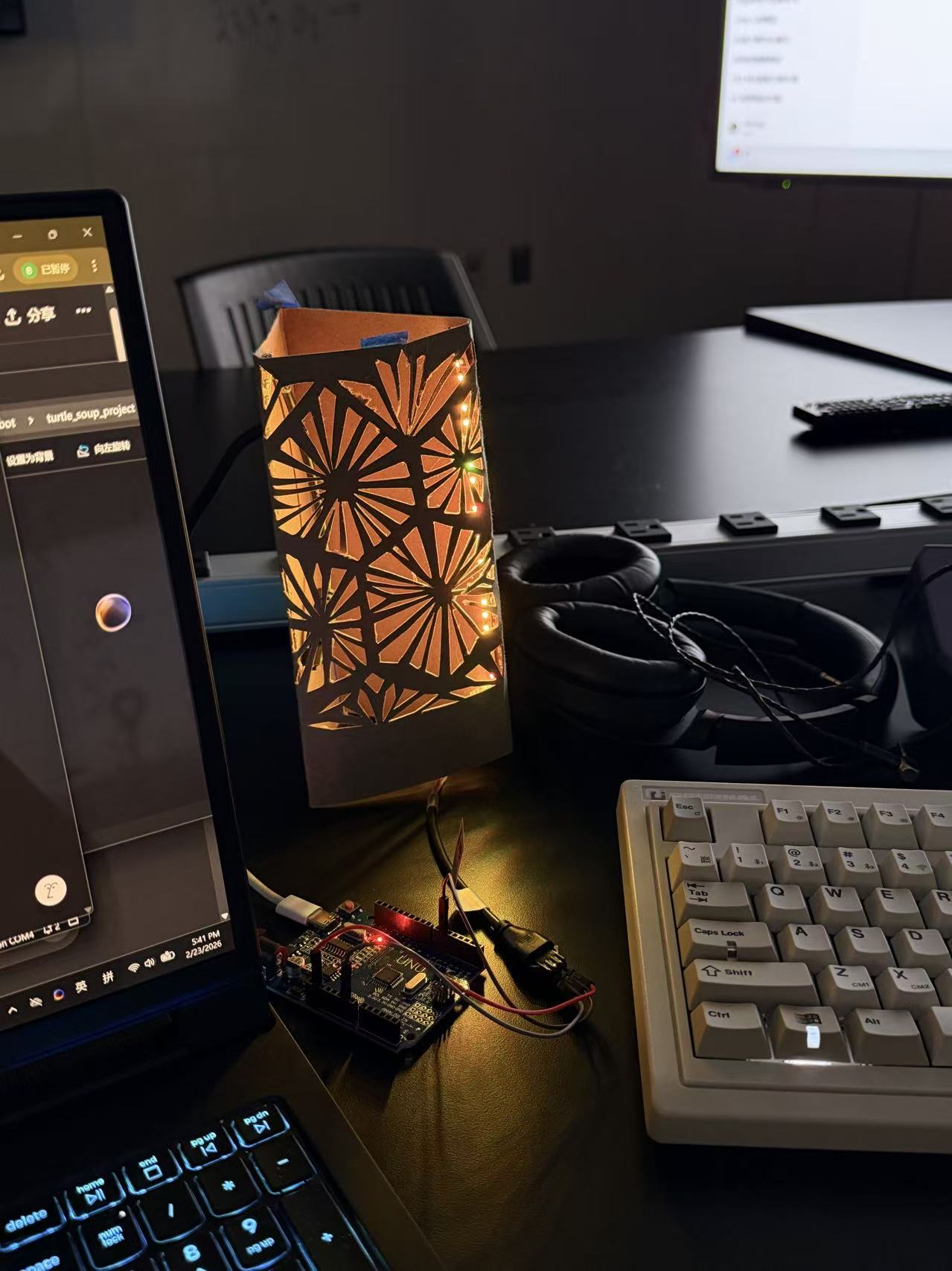 We created a puzzle-solving robot. In fact, I wanted the lamp to have different functions, rather than just being a lighting tool. In many situations, we need light to provide ambiance and illumination, but it would also be a great concept if it could participate in interactions with people and offer different games.